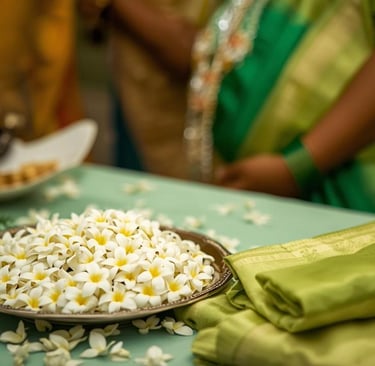 ✔ Create a “Memory Note” or WhatsApp sheet to record her preferences—gold Kanjeevaram saree? Jasmine garlands? Her grandmother’s mysore pak recipe? These personal touches make the ceremony unforgettable.